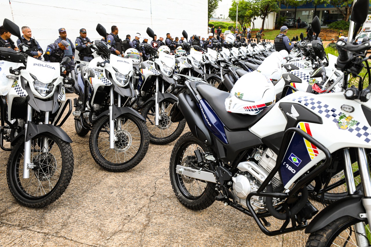 Ainda foram entregues 127 motocicletas Honda XRE 300, que serão destinadas ao reforço do Batalhão de Trânsito Urbano e Rodoviário (BPMTran) e para a Companhia de Rondas e Ações Intensivas e Ostensivas (Raio).