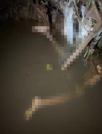 Vítima estava dentro da água, apenas com as pernas para fora. Ela apresentava ferimentos pelo corpo. Cena foi isolada para os trabalhos do Corpo de Bombeiros, DHPP e Perícia Oficial (Politec)