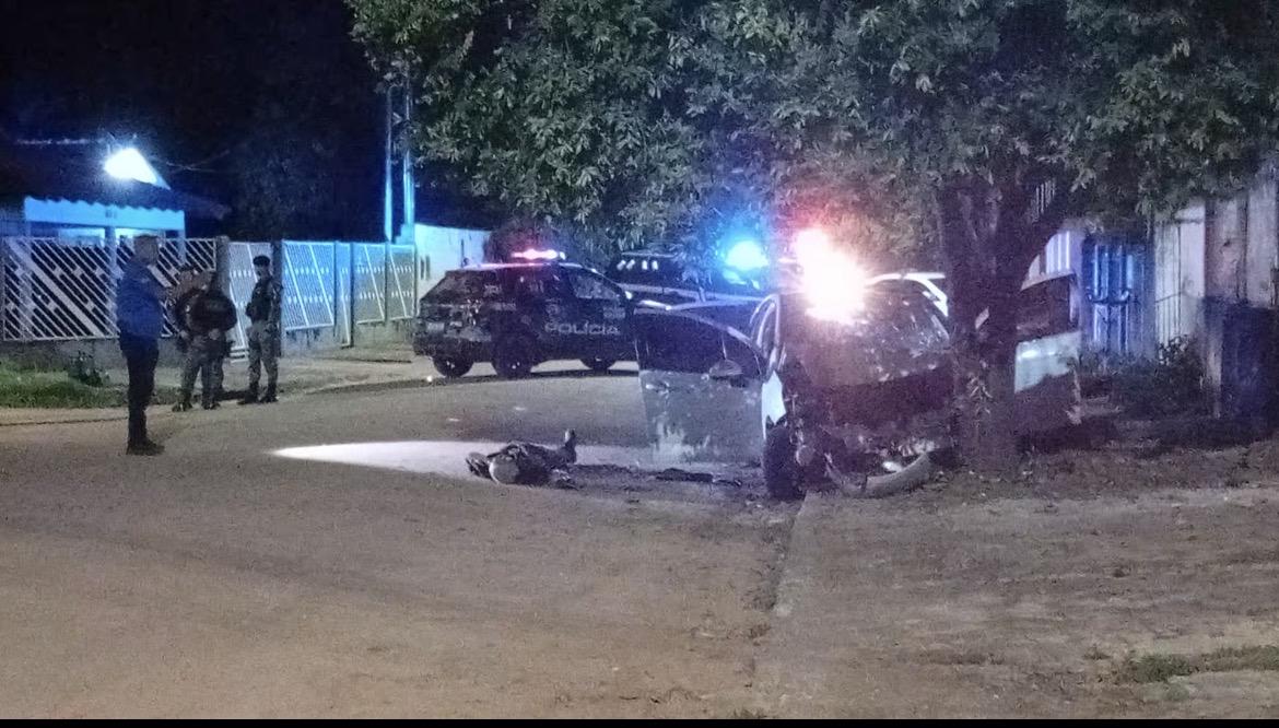 Na perseguição, o condutor perdeu o controle do carro e colidiu contra uma árvore. Mesmo após o acidente, os suspeitos desembarcaram e voltaram a atirar, sendo então alvejados.